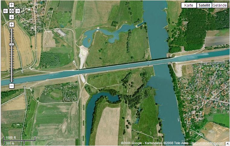 <<< HANNOVER <<< Die Trogbrücke über die Elbe, Richtung Elbe-Havel-Kanal.